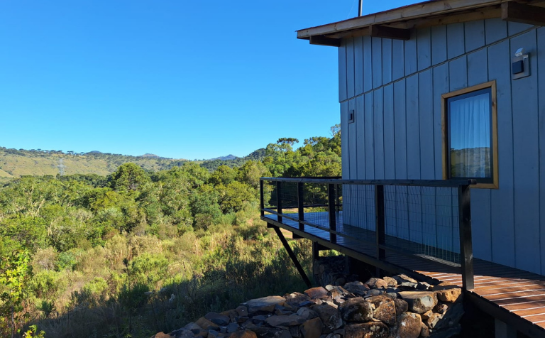 - Amplo deck com vista para o bosque, lago e vale, com confortáveis cadeiras espreguiçadeiras para você relaxar e apreciar a paisagem tomando um bom “vinho de altitude”.