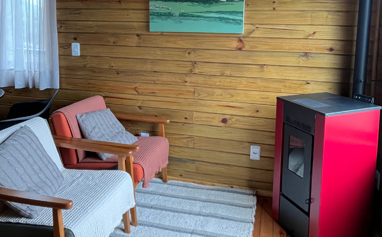 - Calefator a base de pellets, com temperatura regulável e as românticas chamas de uma lareira, mas com total segurança.