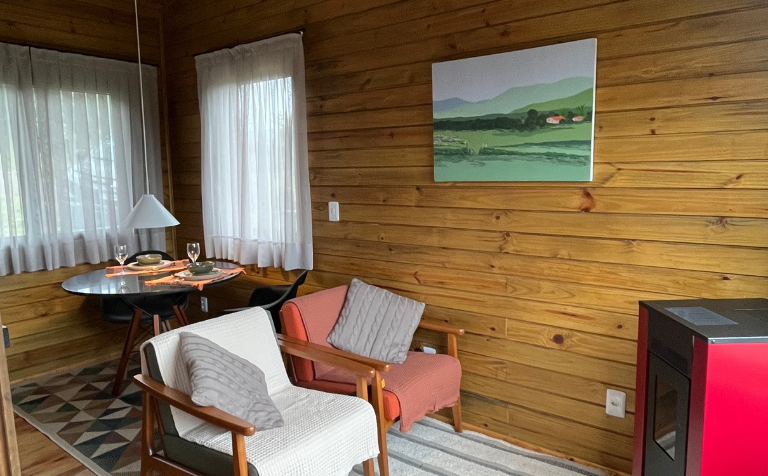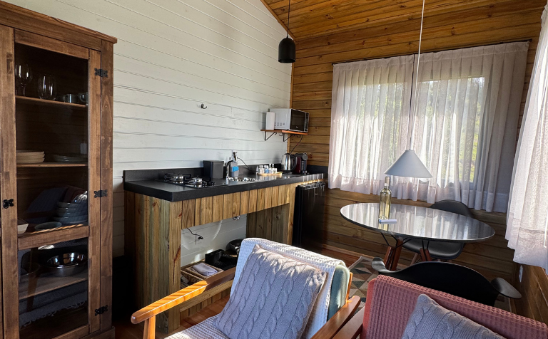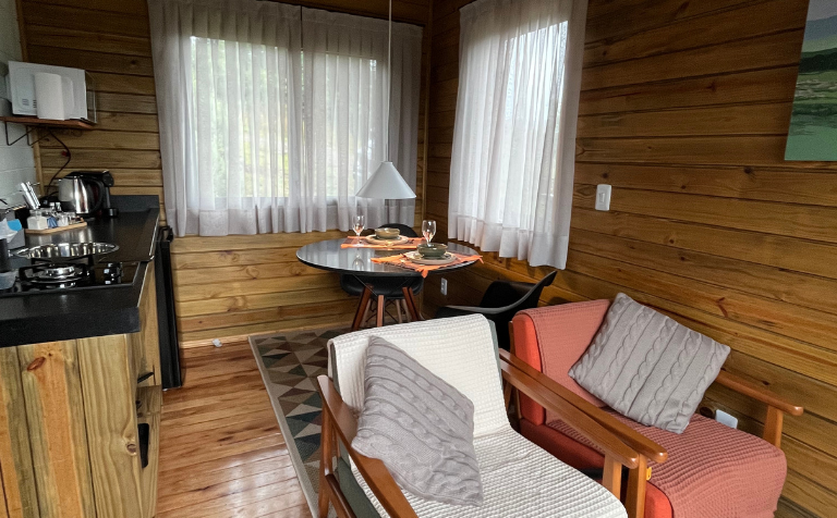 - Chalé com 44 m², sendo 31 m² internos e deck de 13 m².