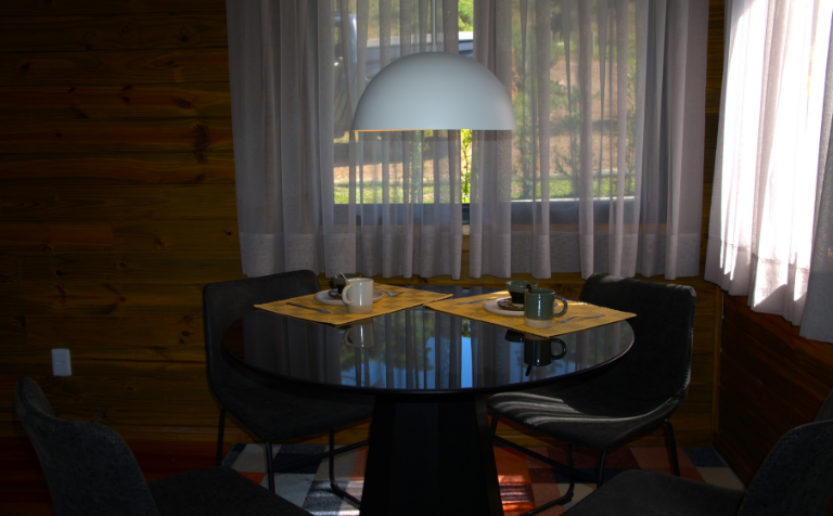 - Mesa para refeições para quatro pessoas (ou trabalho home office).